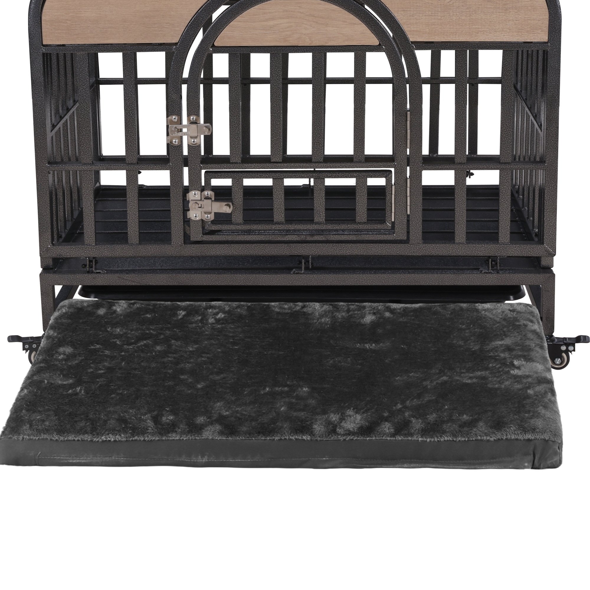 46in Heavy Duty Dog Crate, Furniture Style Dog Crate with Removable Trays and Wheels for High Anxiety Dogs