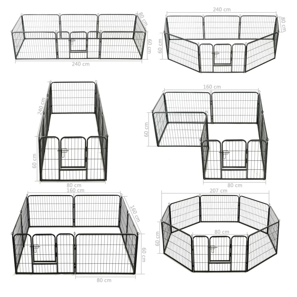 Dog Playpen 8 Panels Steel 31.5"x23.6" Black