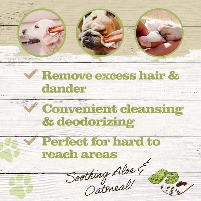 Oatmeal & Aloe Pet Wipes Cats & Dogs Formula: These pet wipes for dogs and cats are made with wholesome ingredients to help soothe, deodorize, cleanse, and remove debris. Safe for daily use.