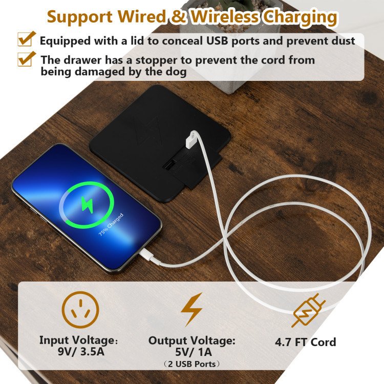 5.Wired and Wireless Charging Device: The dog crate is equipped with a device that supports wireless and wired charging, easy to install in the slot of the desktop. The wireless charger is designed with 2 USB ports and a wireless charging area. When the USB ports are not in use, you can close the lid to hide them to prevent dust.