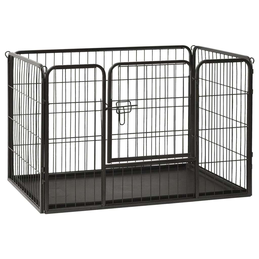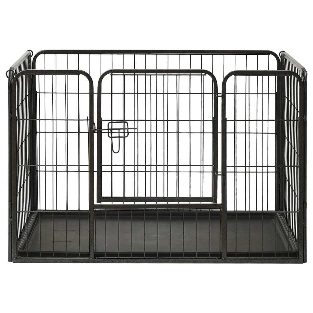 This dog playpen can be easily set up or taken down. It features a hinged door with a security latch for easy access. This durable and weather-resistant playpen is made of rustproof powder-coated steel, making it suitable for outdoor and indoor use. A plastic bottom tray is also included in the delivery.Color: BlackMaterial: Powder-coated steelOverall dimensions: 36" x 23.2" x 24" (W x D x H)Door size: 12.2" x 16.5" (W x H)With 1 hinged door with a security latchSuitable for indoor and outdoor useEasy to assembleIncluding a plastic bottom tray